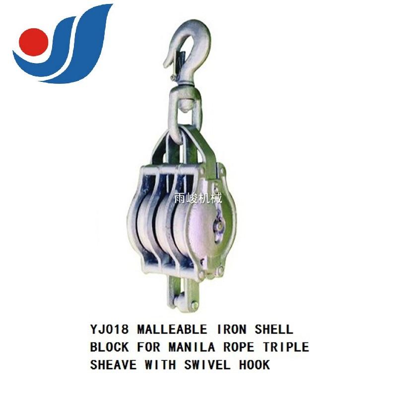 • YJ018 鐵殼馬尼拉滑輪 三輪旋轉(zhuǎn)鉤式