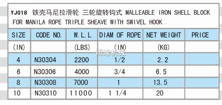 YJ018 鐵殼馬尼拉滑輪 三輪旋轉(zhuǎn)鉤式
