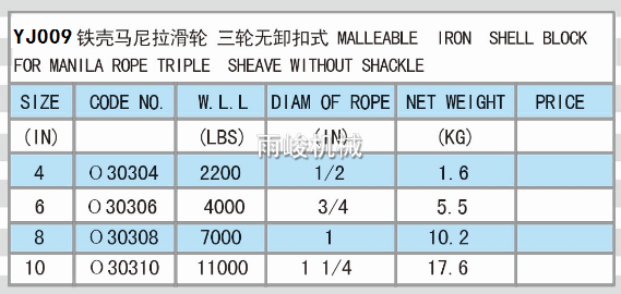 YJ009 鐵殼馬尼拉滑輪 三輪無卸扣式