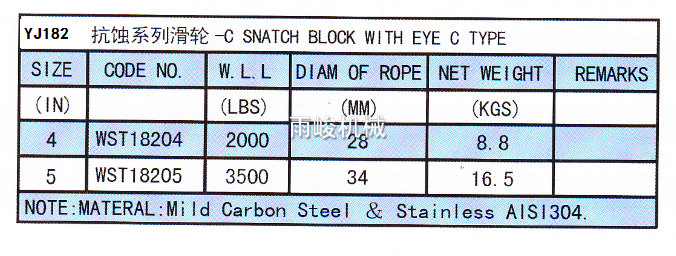 • 產(chǎn)品描述:該系列產(chǎn)品分碳鋼熱鍍鋅和不銹鋼兩種,可以開口,用于船上,有四寸和五寸兩個(gè)尺寸,繩徑大,適用馬尼拉繩。