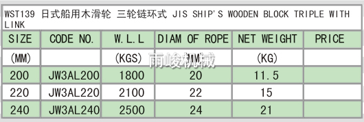 • YJ139 日式船用木滑輪 三輪鏈環(huán)式