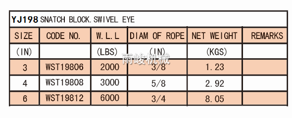 • YJ198 SNATCH BLOCK SWIVEL EYE