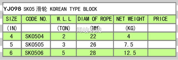 • Product description: This is named Lashing Block. The size is from 4" to 6", the working load from 2T , 3T and 5T, and the Diam of Rope from 22MM to 28MM, it is lighter and small, but could be bear heavier.