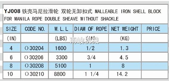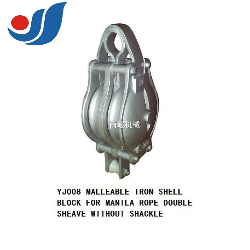 YJ008 MALLEABLE IRON SHELL BLOCK FOR MANILA ROPE DOUBLE SHEAVE WITHOUT SHACKLE