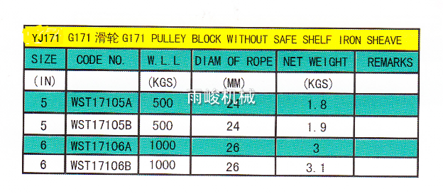 YJ171 G171 PULLEY BLOCK WITHOUT SAFE SHELF IRON SHEAVE