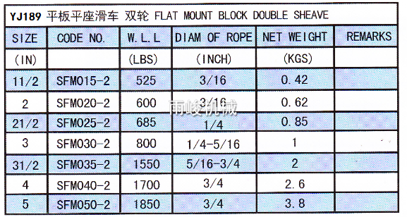 • YJ189 FLAT MOUNT BLOCK DOUBLE SHEAVE