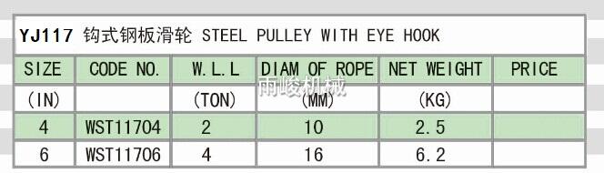 • YJ117 STEEL PULLEY WITH  HOOK