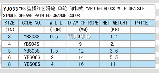 • YJ033 YARDING BLOCK WITH SHACKLE SINGLE SHEAVE PAINTED ORANGE COLOR