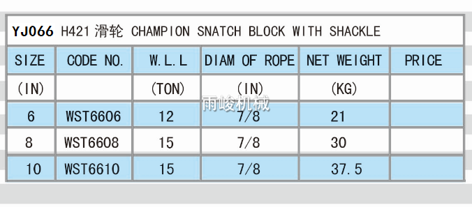 • Y066 H421 CHAMPION SNATCH BLOCK  WITH SHACKLE