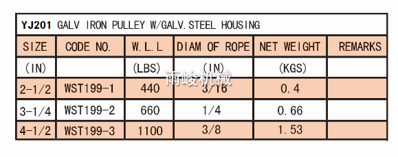 YJ201 GALV PULLEY WITH STEEL HOUSING
