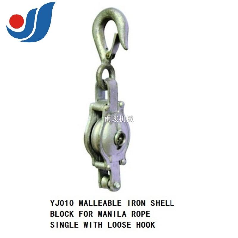 YJ010 MALLEABLE IRON SHELL BLOCK FOR MANILA ROPE SINGLE SHEAVE WITH LOOSE HOOK